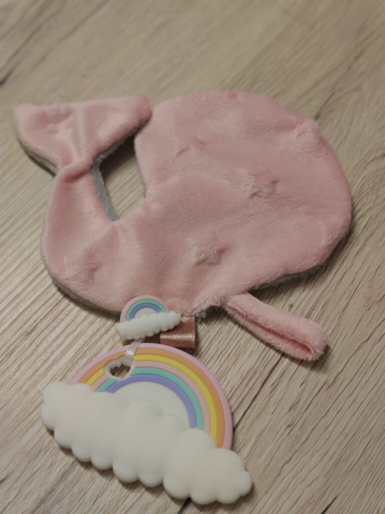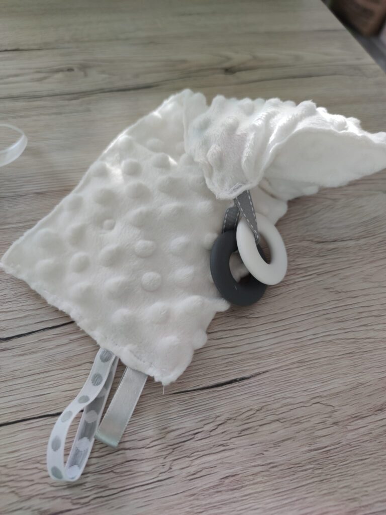 Kuscheltüechli mit Elementen zum Ertasten, Rasseli oder Glöckli innen & Beissanhänger 24.- CHF
